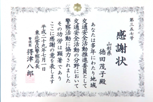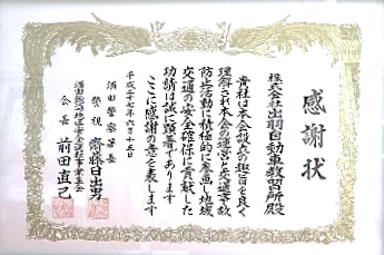 企業ぐるみ交通事故ゼロ運動で平成18年から平成27年の約10年間事故を起こさなかった企業で表彰されました。